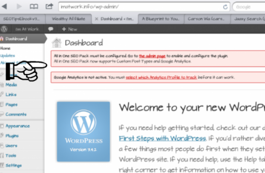 you mean those two red alerts? the All in one SEO pack click on the "go to admin page" and then fill in the information, like site title and homepage, and click "activate" and that should do it, the Google Analytics one you can just deactive, if you want to stick an analytics ID code into your site, all in one seo does that too...read this training if you need more help. https://my.wealthyaffiliate.com/training/set-up-a-wordpress-website-complete-guide/all-in-one-seo-installation-guide/