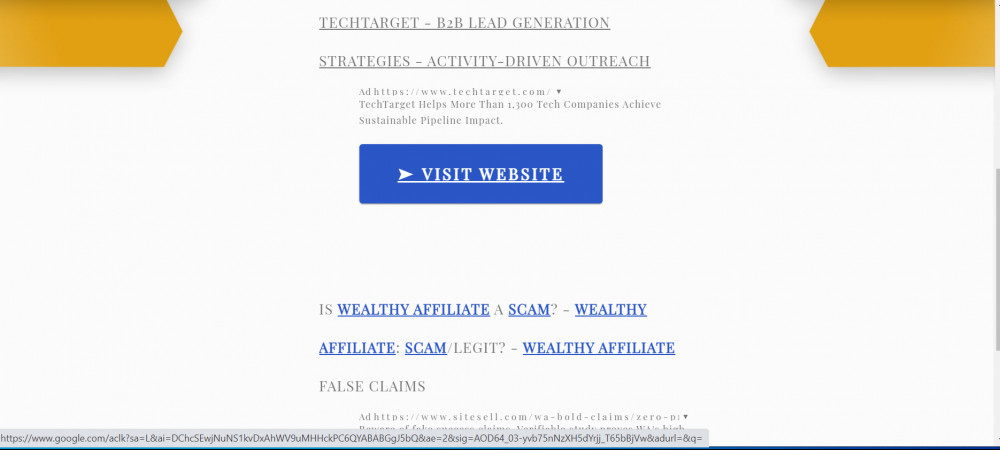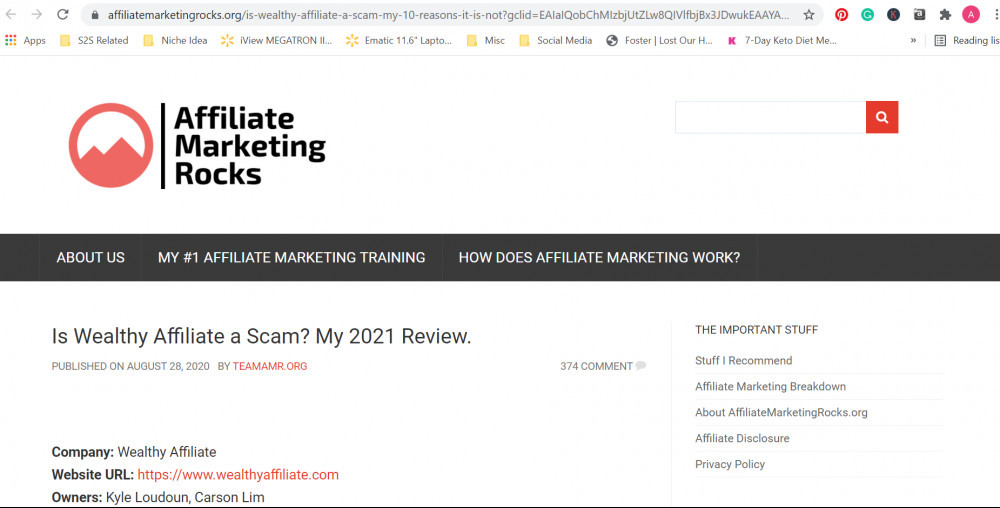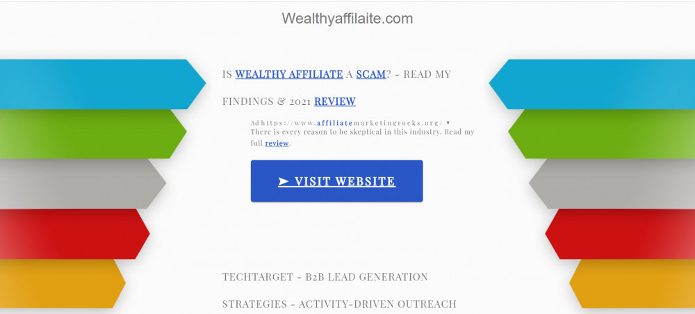 Interestingly, if you click on the links, they all go to different affiliate sites. For example, when I click on the second link, 'Scam Wealthy Affiliate,' this page comes up: