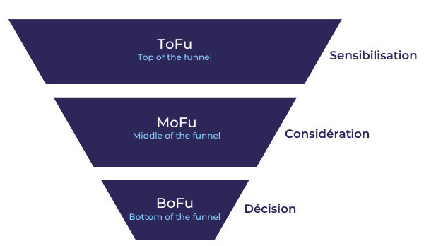 The contents of the marketing funnel are thus divided: TOFU, MOFU, and BOFU. Depending on your prospect's position in the process, the content you offer them will have to be different, in order to move them forward in your marketing funnel.