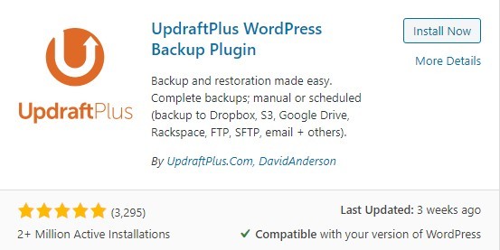 One of the highest rated backup solutions is the WordPress plugin named ‘UpdraftPlus’ which even the free version offers a suitable means to fully backup your website files, database, plugins, and themes. It is an easy to use program needing only minimal technical knowledge.