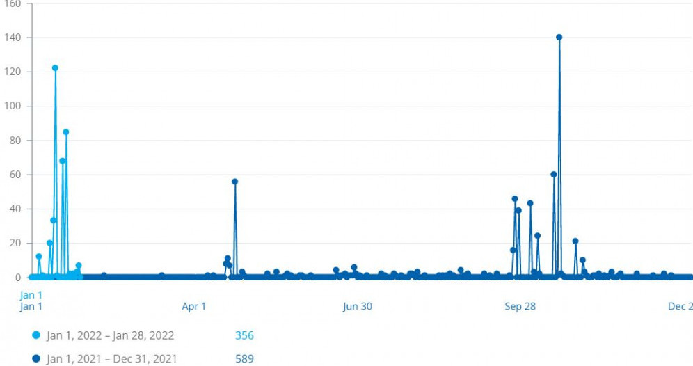 So as you can see in all of 2020 their were 71 affiliates clicks with 0 sales. In 2021 their were 589 affiliates clicks with one sale. And just in the first month of 2022 their were already 356 affiliates clicks with 1 sale!