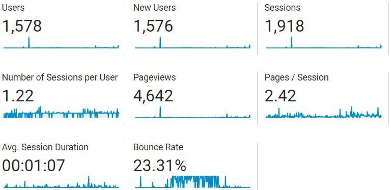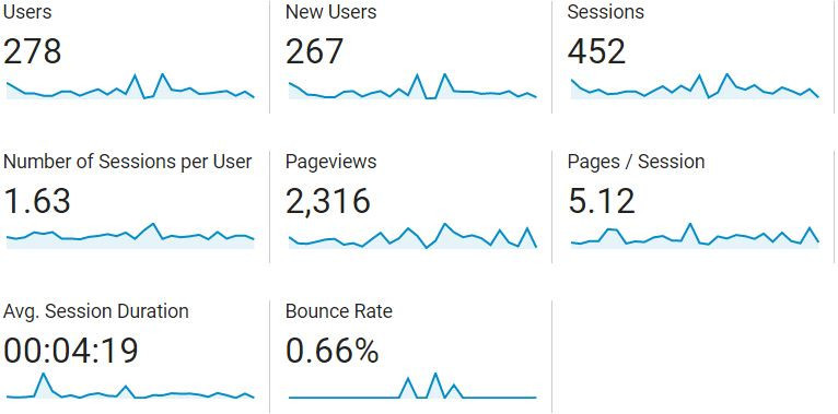 Wow 278 users already! As you can see by the spreadsheets above that is higher than almost every other month except for 2 of them! The bounce rate is way down compared to the last 2-year averages as well, another good sign! Plus the avg. session duration is over 4 minutes, showing that visitors are resonating with the content and spending more time on my website.