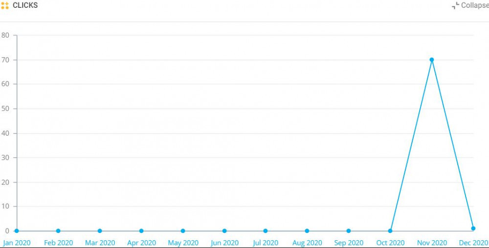 Despite all of this I did manage to publish my first affiliate review article in November 2020, as you can see by the following graph from CJ. Since it was a gardening product I really published it at a terrible time, heading into the winter. It received 70 affiliates clicks and no sales after being published before going back down to just 1 click before the end of the year.