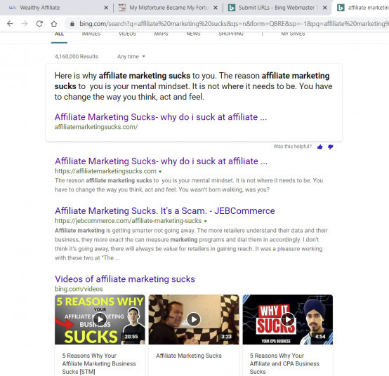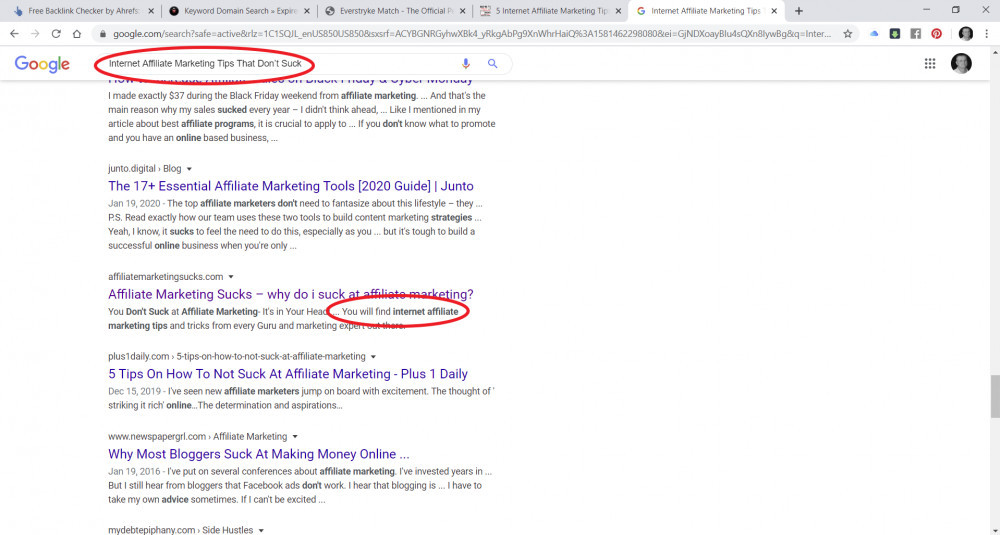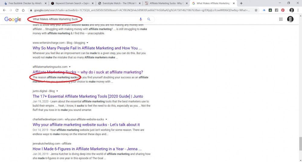 You did it! I remember seeing your post when you were asking about making your domain name "affiliatemarketingsucks" and I remember you getting some negative feedback on that name but you went ahead and did it anyway and look at you now! First page on Google!