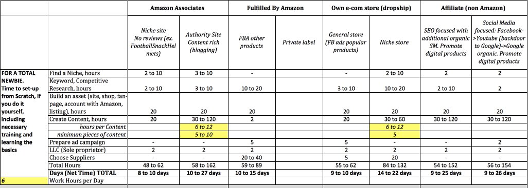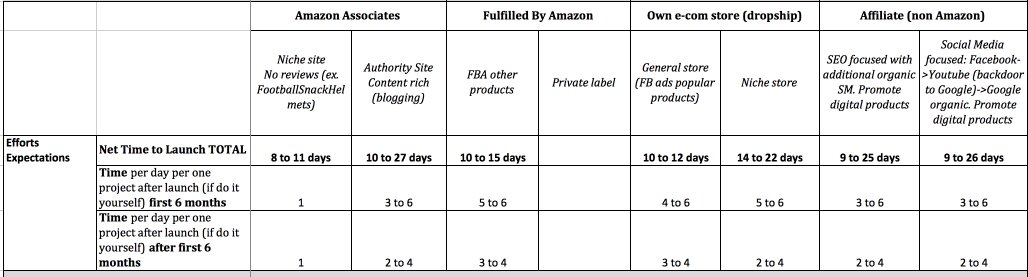 The reason for this 'helicopter view' is to understand what efforts and skills are needed to run different types of online projects.And to make a decision - which one (or a combination) to choose to invest time, money and efforts with maximum ROI.