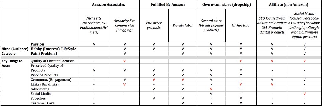Table 3. Key Things to Focus (in Red are the most important) and Niche Types