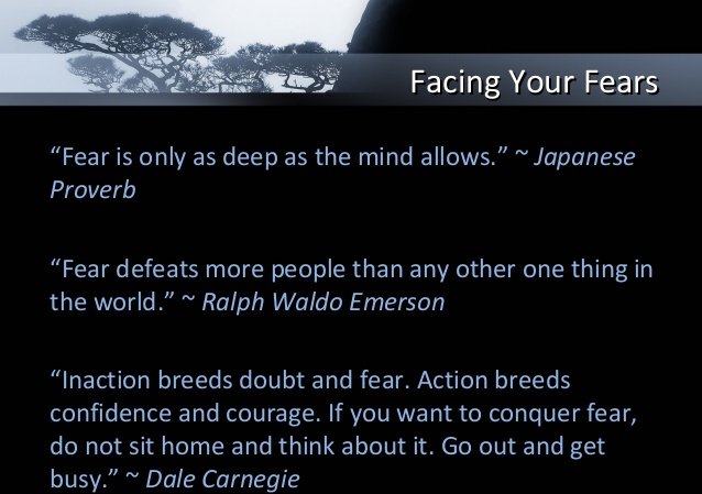 I have one fear, that is the fear of heights, non of the proverbs above is going to cure me of it I'm afraid to say Hahahahahaha,