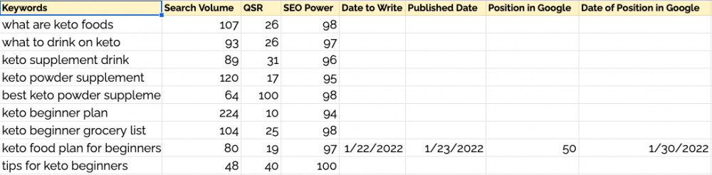 4. A magical sheet on Keyword research, this is how it looks: