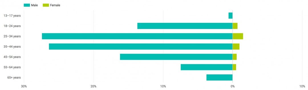 Pretty much all of my viewers are men. The majority of them are between 25 and 44 years old. Well, there goes my effort trying to reach 20 y.o. ladies...