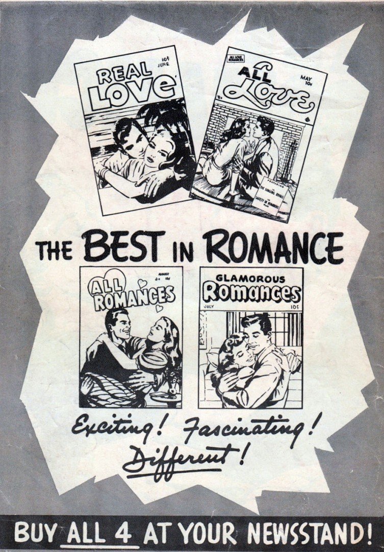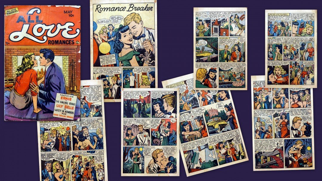 Let's turn to comics and pick 1950 as a benchmark. A lot of these literary and art efforts are now in the public domain, and give a window into romance and love in "ancient history."