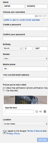 - Fill in the form (name, last name, username, create password, confirm password, your birthday, mobile number, current email for recovery and last the captcha)