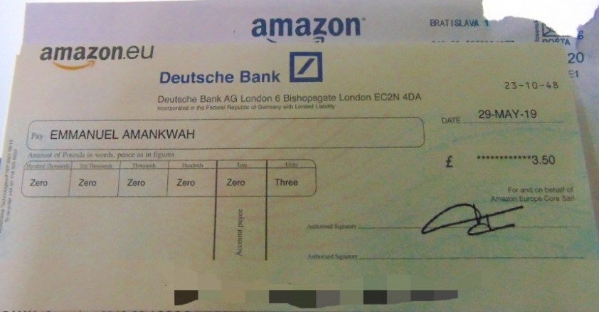 First Cheque From Amazon