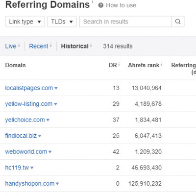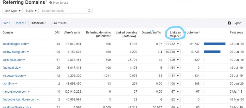 After then, I clicked “Links to Target” to set links from maximum to minimum. Then, I found following sites are can’t be understand as real backlinks. And it might suspecious sites.