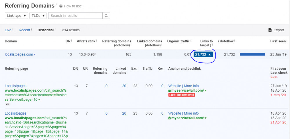 One backings type were more than 20K. Then, I checked, what pages were that backlinks generate.