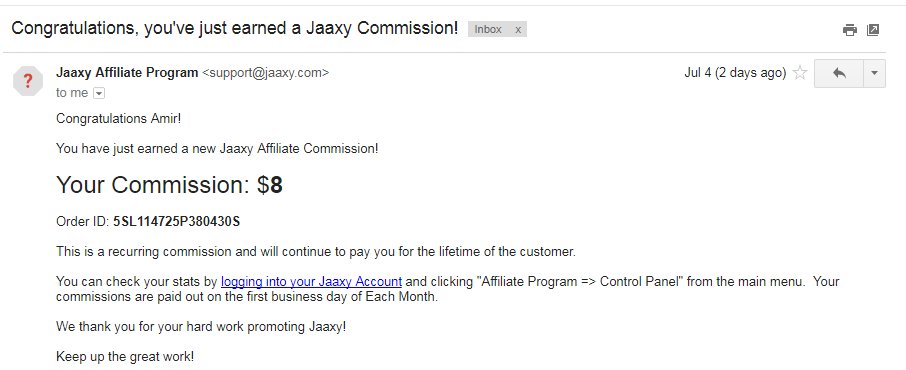 My first recurring income from Jaaxy!