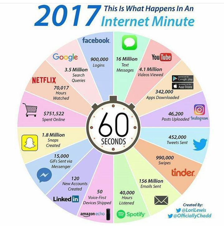 Very cool graphic. It's amazing how many of those I take part in... Maybe not in a minute, but I'd say I contribute to 70% of that pie in a day. Thank you for sharing.