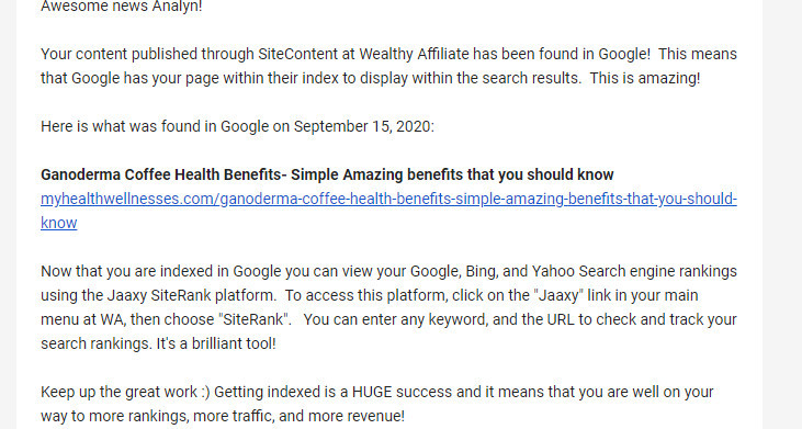 Thank you, I thought I have to go a long way to be indexed in Google but thanks to the help of the community and the tools provided by Wealthy Affiliate.
