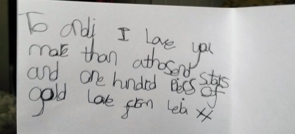 Thanks Steve, nice of you to say, I was blown away by Leia's card too. Being her step mum, you never quite know you are getting the balance quite right until you receive something like that.