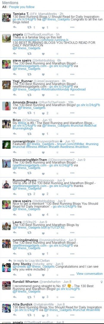 In my latest post on my fitness gadgets site, I featured a total of 130 running blogs. It took a massive amount of time to research and read at least a portion of each blog to be able to write a decent text about each site.