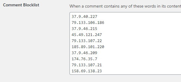 Now, I know we have spam filters which they are clearly getting past. But I also know that you can blog spammers by putting their I.P. address in the discussion area of WordPress...