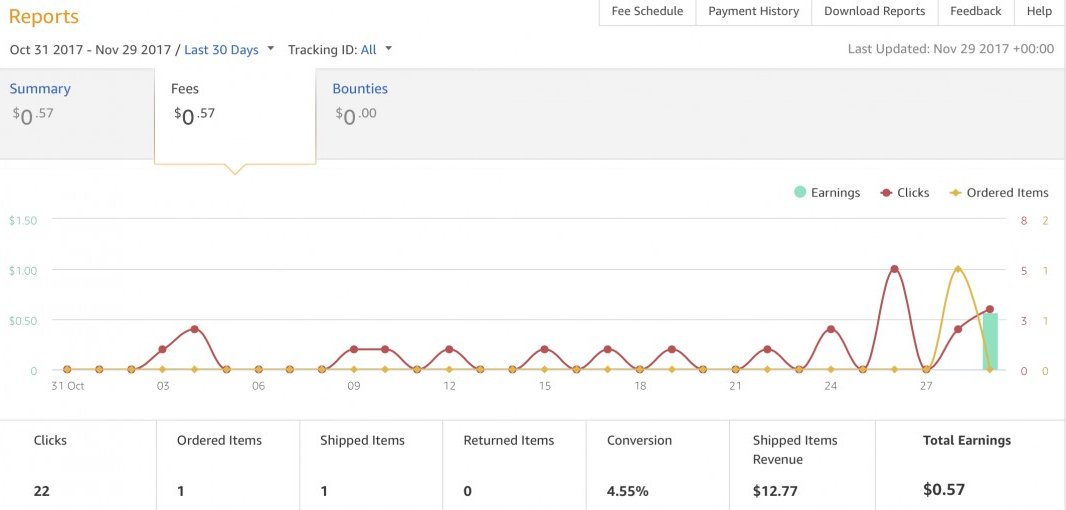 I'm super excited about this!! I woke up this morning to check my Amazon Affiliate stats and saw that someone ordered a book I spoke about, and I earned 0.57$ !!