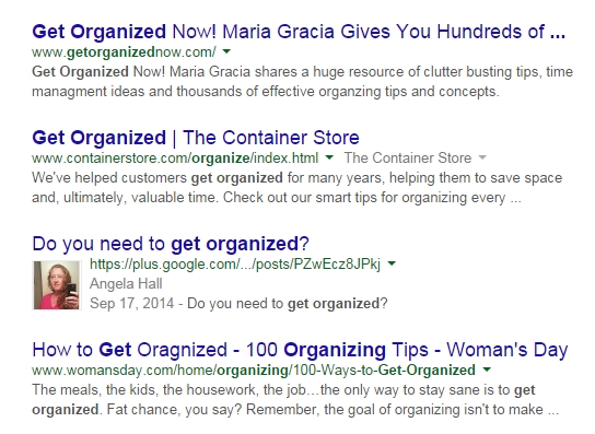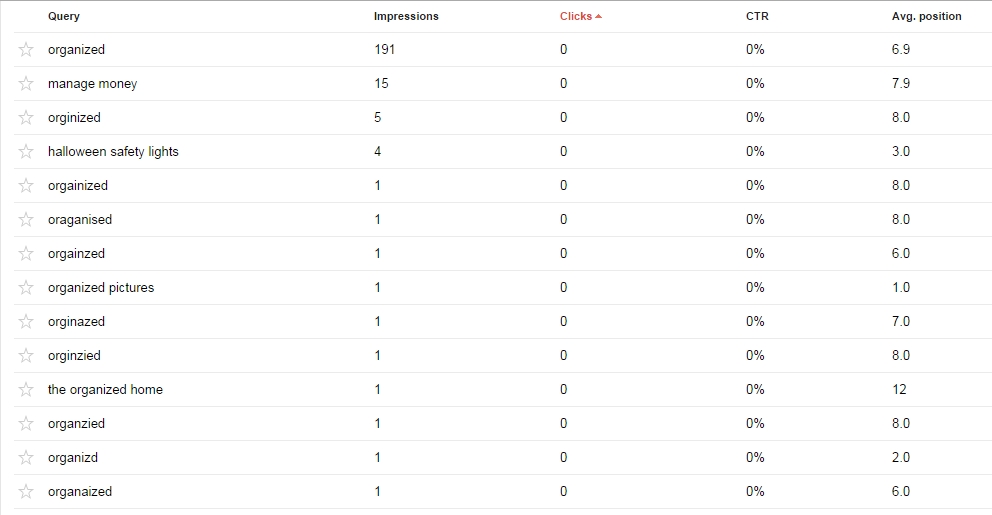 And fifth is the average position in Google on that day. I was only able to find one listed here by searching. When I searched I didn't use the keyword, I used get organized because that is the keyword I used for the article.