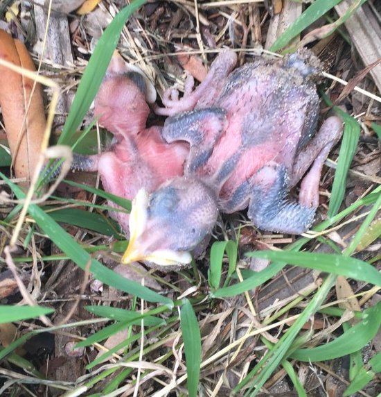 There was no nest that I could see but the two rangers came buy and took them and tried feeding the two birds. They lasted two days but at least we tried.