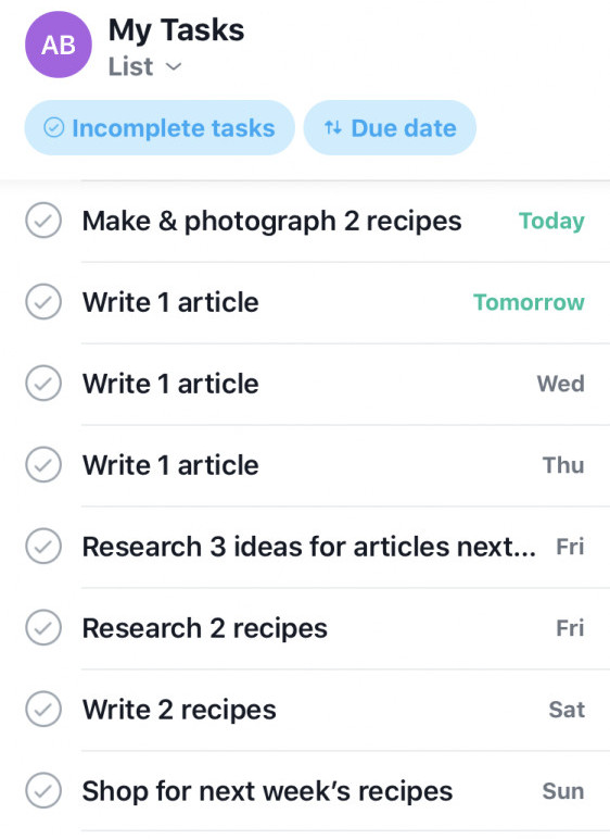 I've downloaded this app, called Asana and made a “to do” list for the whole week (I should mention here, that I am currently unemployed, so I’ve got quite a bit of time on my hands).