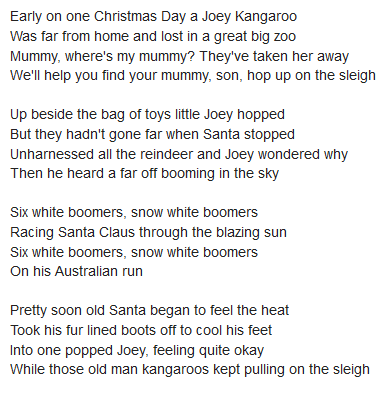 In the spirit of my being in Australia, here is part of a song by Rolf Harris and John D Brown. The song is called "Six White Boomers". The Boomers are "old man kangaroos".