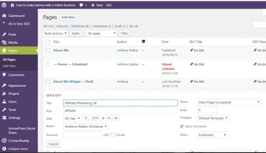 - Click pages/posts