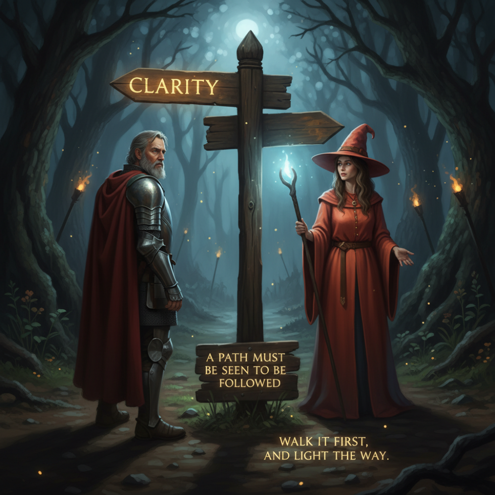 Arthur turned toward Lady Schema, brow furrowed. “But what if the path is clear to me, yet hidden to others?” She smiled gently. “Then you must walk it first, and light the way for others.”