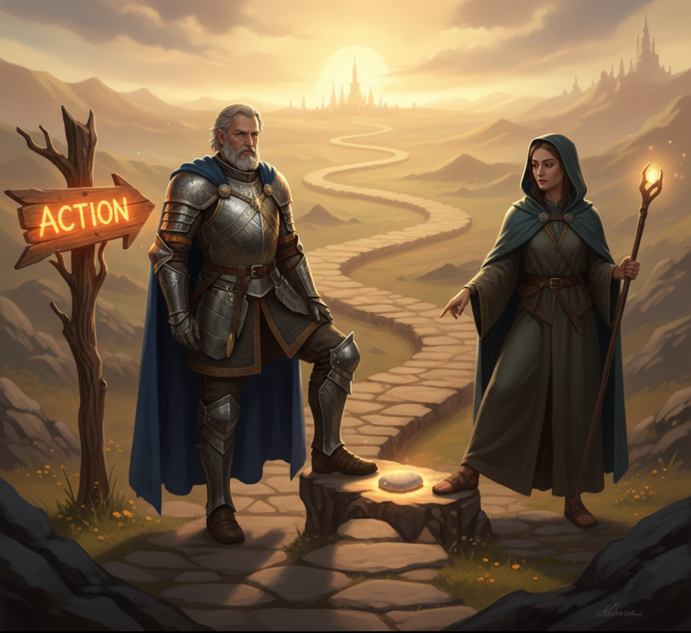 He looked to the horizon, where the path glowed brightest. “To inspire action, I must offer a step they’re ready to take.” he thought