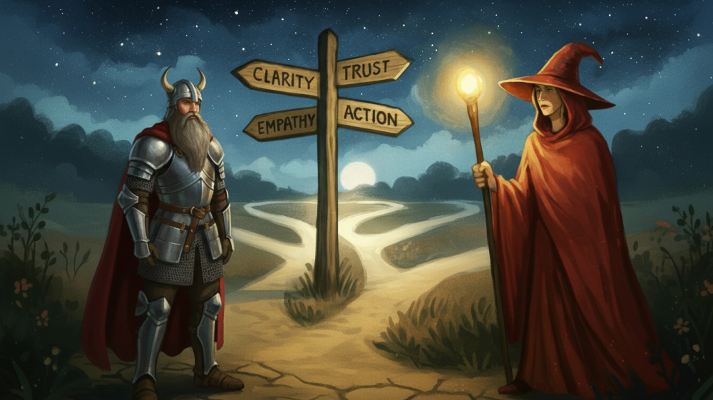 Arthur stepped onto the glowing road, his crest shining brighter. He now understood: persuasion is not about juggling skills, but about harmonizing them into one clear, compassionate, trustworthy, and actionable path.