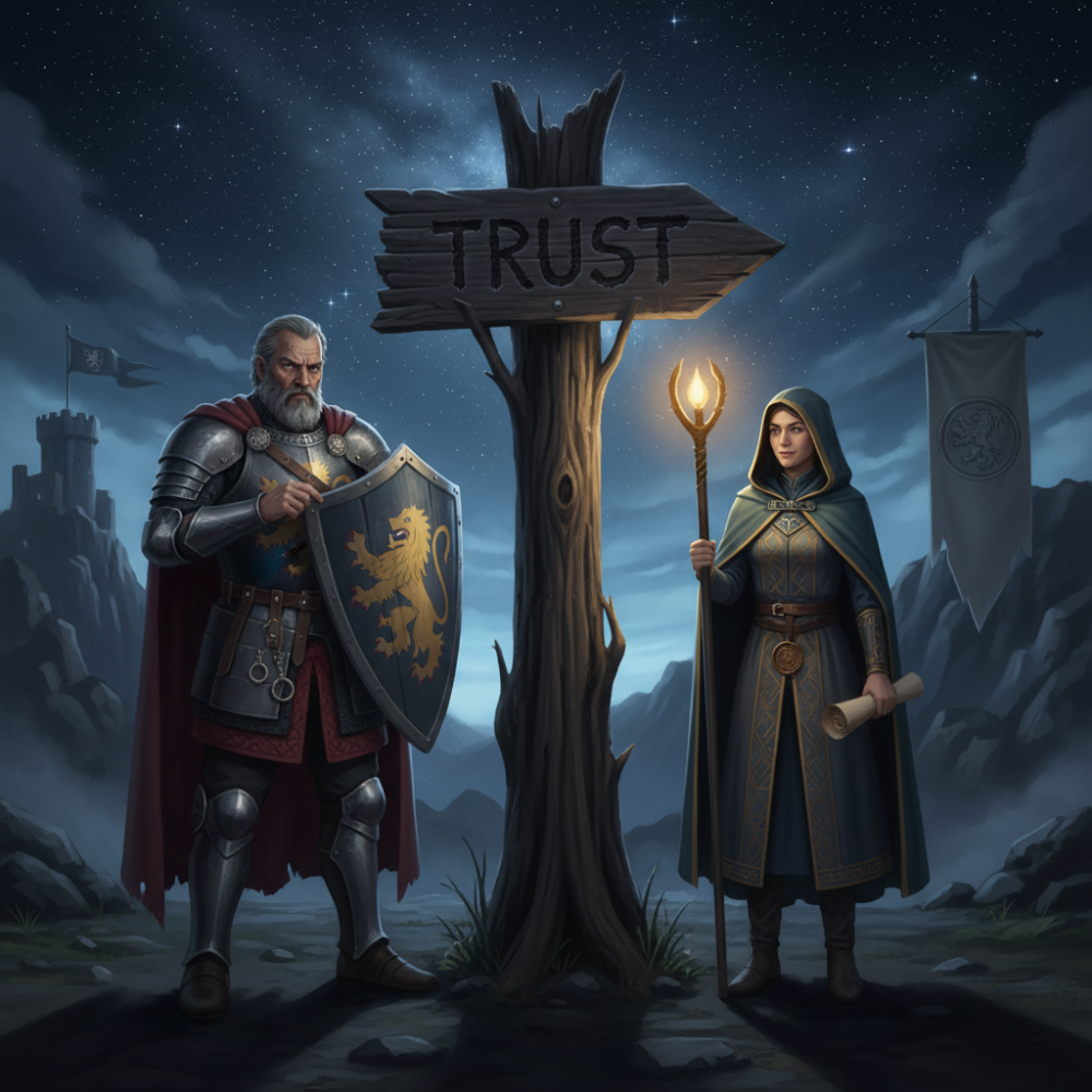The third arrow stood firm, carved deep into the wood. “Without trust, no path leads forward,” Lady Schema said firmly.