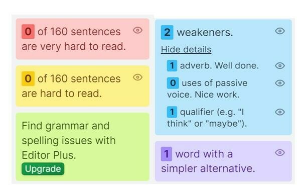 The Hemingway editor is awesome been using it for many years enjoy you new writing style hehe