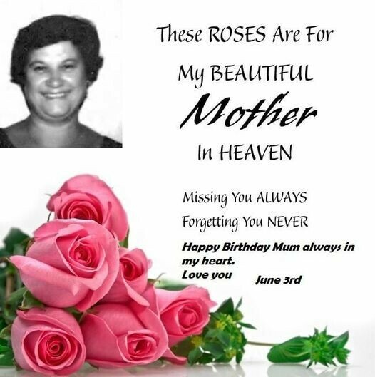 Today it is the 3rd of June 2023 and is my Mother's Birthday she would have been 86 today.