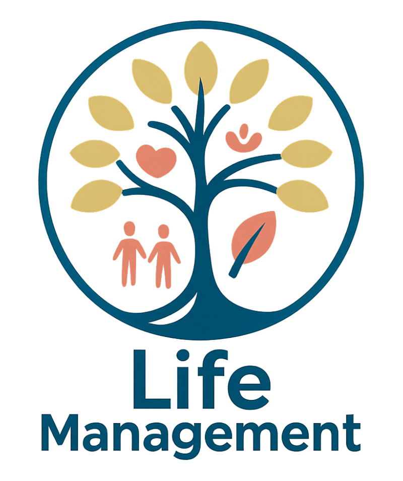 I really like the last logo for the Life Management site. Again - I don't know how easy it is to get the same again with just tiny tweaks. If you can get exactly the same, you could play around with different colours. I think a dark purple - like the one in the second logo - might be nice, but then you might need to change the other colours too.