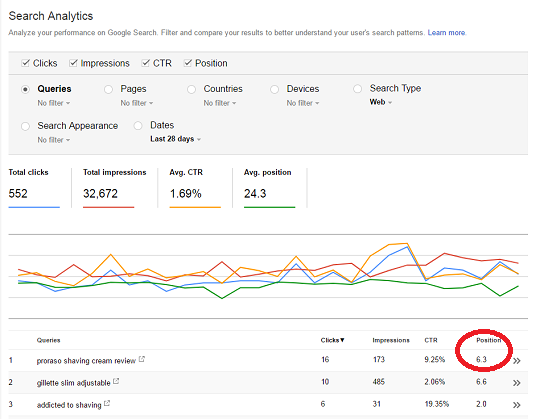 One post got 16 clicks. It is the highest for the last 28 days. Search Console says that it usually ranks 6.3.