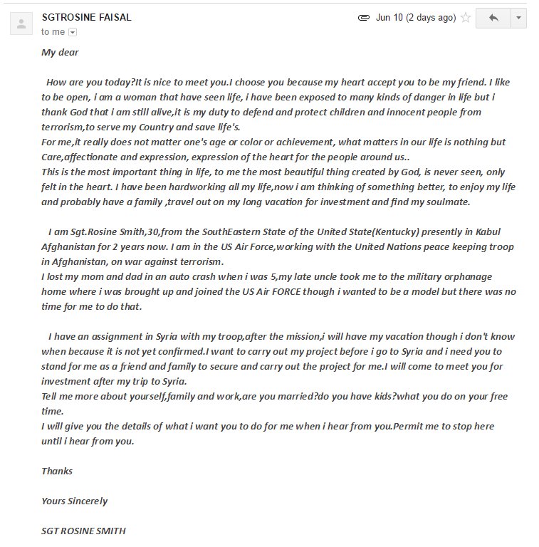 Thanks for posting this up and clarification on this matter, as i only joined few weeks ago i received the same msg from 1stclassSgt which in the msg i found really fishy, so i just ignored it totally as i was more busy dealing with my training here on WA.