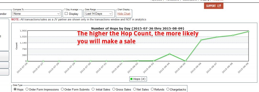 I've used Clickbank for about 15 years now, and although payment is always on time and correct I have noticed over the years that often the hops don't correspond to what other applications are telling me, e.g. Analytics, email software, etc.
