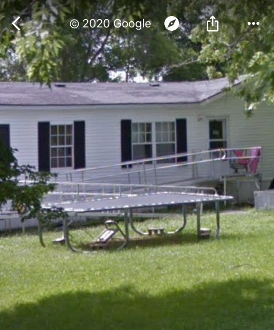 We don't have the trampoline in the picture because the Google Maps picture is from some later time when someone else lived here, but the ramp was here.