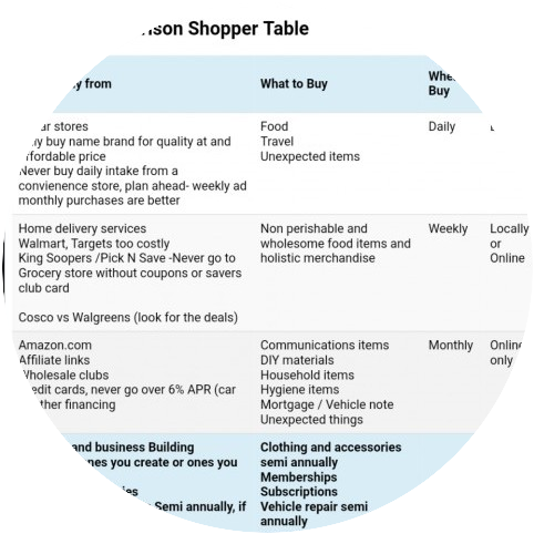 I created a Comparison shopper table on my site that tells Others -What to buy and When to buy it. It's a general chart which basically breaks down daily, weekly, monthly or annual spending.
