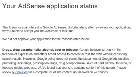 Not only did they not offer an explanation, they didn't even notify me about it. They just did it. One day, the ads just stopped, without warning or explanation. When I contacted them about it, they simply said, "We don't discuss such matters."