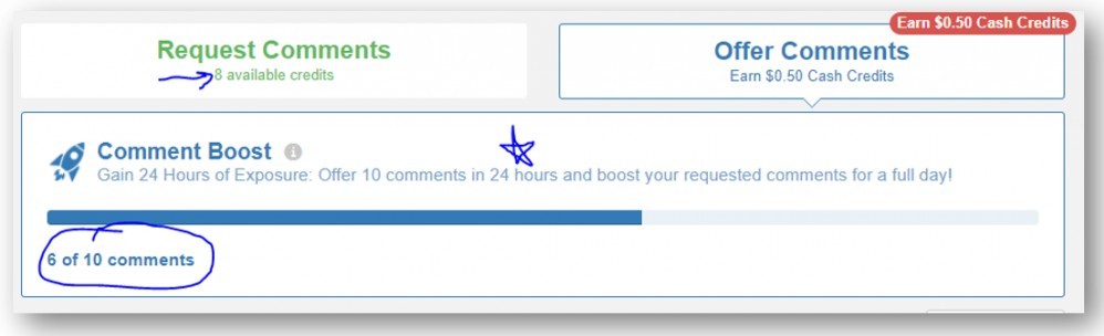 For every comment you earn a credit. Once you get 10 total credits in a 24-hour period, BAM - You get 24 hours of comments on YOUR posts: