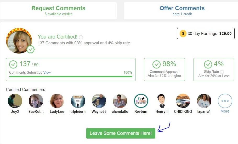 If you would like to get your comments - you simply click on that green REQUEST COMMENTS tab at the top, and you'll be taken to this page: