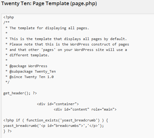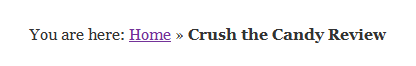 So first thing then, here is the bread crumbs code for my candy crush site which uses the twenty ten theme, this particular code is obtained from the Yoast SEO plugin I use on this site