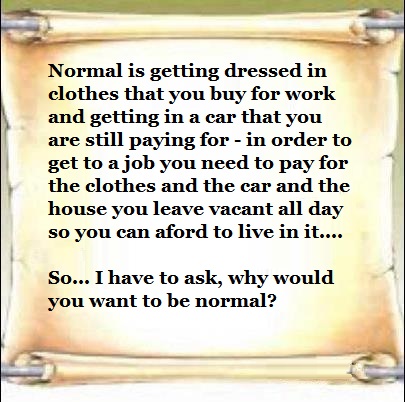 Here's something I posted, a little quip I set on a picture into my pintrest for business. Isn't that the point of all this work we're doing? To be free of Normal? How hard must it be, to keep yourself focused on that?