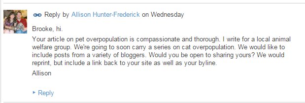 Please check out my pet overpopulation post here. I welcome your comments, likes, and shares, as always. :) Best of luck to all of you!