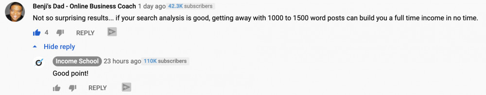 My comment was me pointing out that low competition, or "low-hanging fruit", keywords and 1000+ word posts can make anyone successful.
