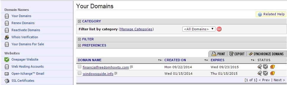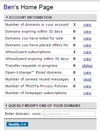 - On your homepage, you will see under account information, the says "Number of domains in your account", click the view link at the end of this line.